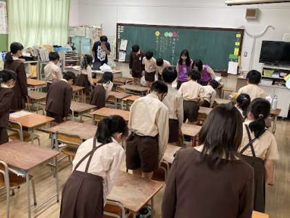上級生が下級生に思いやりの心をもって接しています。2学期を最後に解体される西館掃除は思いを込めて仲良く活動してもらいたいです。
