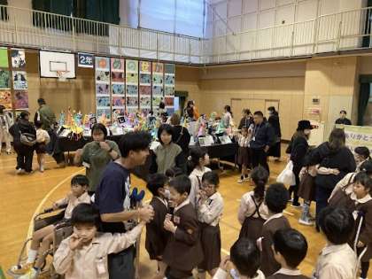 低学年も鑑賞しました。上級生の作品を見て、「すごいなあ」と尊敬しています。素敵な高学年に成長してほしいです。