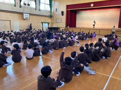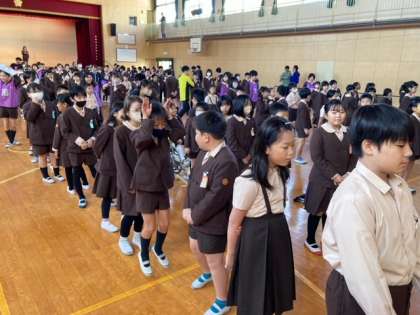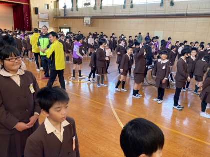 ジェスチャークイズをしました。動作だけで伝えるのは難しいですが、たてわり班で楽しい時間を過ごすことができました。