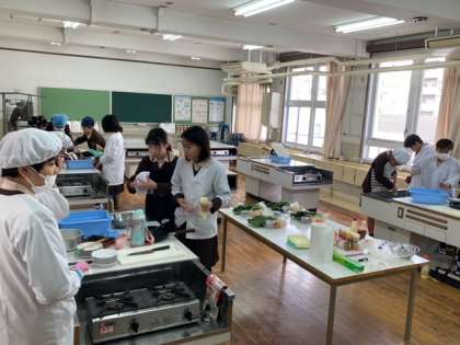 ?家庭科は調理実習をしました。卵・ホウレン草・シーチキンを使って班ごとにメニューを考えました。協力して楽しく活動しました。美味しく出来上がったので、お家でも腕前を披露してもらいたいです。