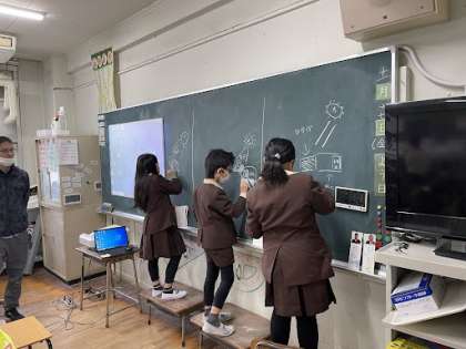 調べるための計画を自分たちで考えて、黒板に絵を描いていました!