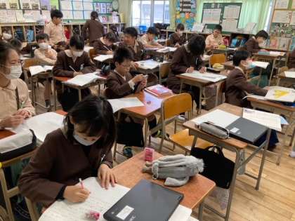 国語「大造じいさんとがん」はその後の話の続きを想像を膨らませて作文を書き進めています。