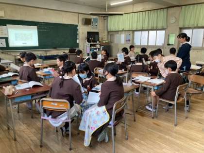 社会は大和川の様子について気付いたことを友だちと意見交流をしています。