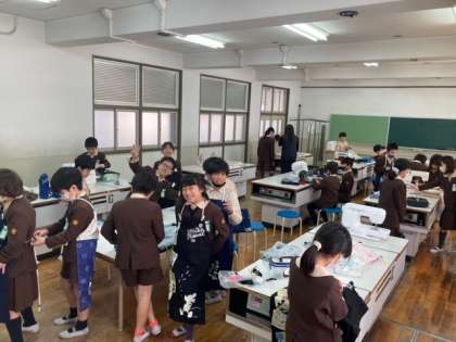 家庭「ミシン」は扱いに慣れるように手順を確かめながら取り組んでいます。