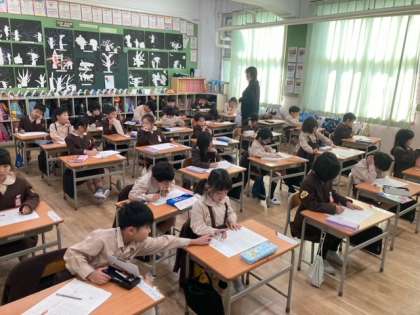 1年生は、国語のテストをしました。最後まで頑張ろうとする姿から成長を感じます。