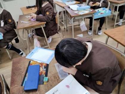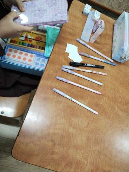 2年生の教室でも、鉛筆や消しゴムなど自分の持ち物に記名しました。記名していると、落としても自分の所にかえってきます。