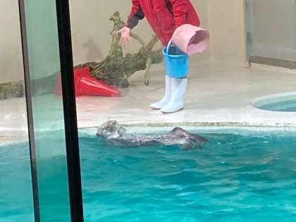 可愛い表情のラッコを見ました。ふわふわした体型の愛らしい姿に癒されます。