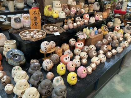焼物の魅力にも関心を持って欲しいです。条件によって色も変わり、オンリーワンの作品が出来上がります。不苦労(フクロウ-苦労しない)や無事帰る(カエル)等の意味を持たせています。