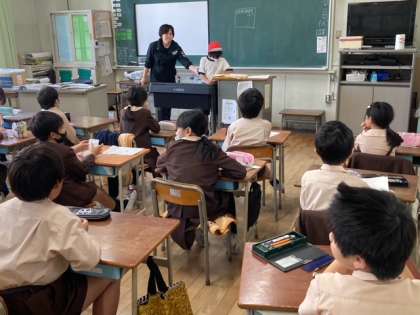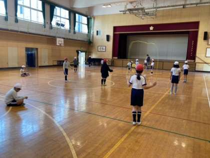 体育では、縄跳び運動でいろんな跳び方に挑戦しています。