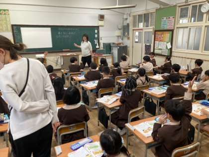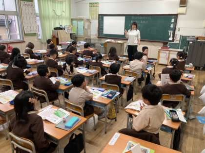 算数では足し算の文章題を考えました。日常生活の場面でも活かせるように問題を考えました。