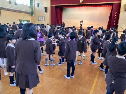 児童集会は、たてわり班のゲームをしました。少しずつ触れ合いや人間関係が深まっています。