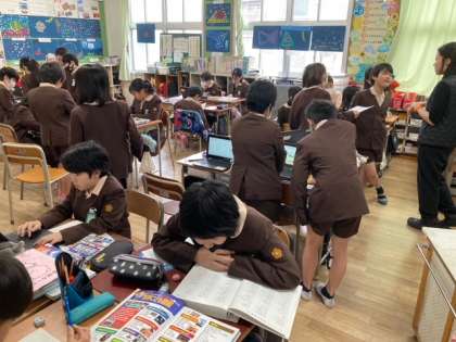 国語は興味・関心のある内容で班を作り、紹介文を考えました。