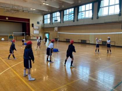 体育館でソフトバレーボールをしました。少しは続くようになってきました。
