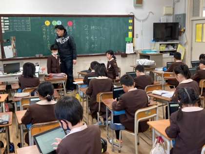 タブレットで文字打ちの練習をしています。調べ学習に必ず必要なので正確に素早く文字入力が出来るように練習しています。