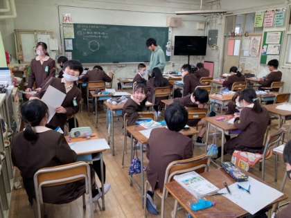 算数は「正六角形ができる理由を説明しよう」で友だちと考えを交流しています。