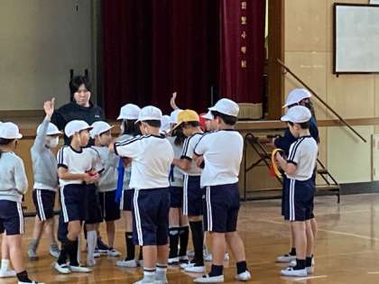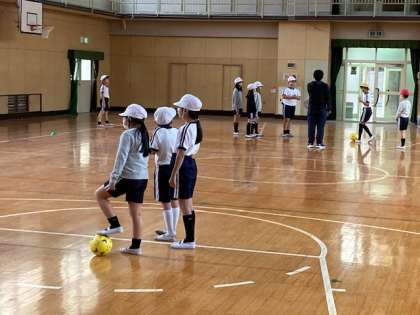 ミニサッカーでは作戦を考えチームワークを大事にしています。