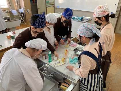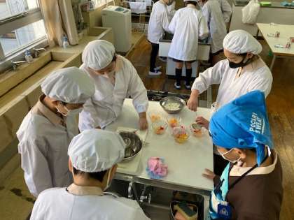 後片付けも協力して手際良く進めました。この後はいよいよ会食を楽しみます。