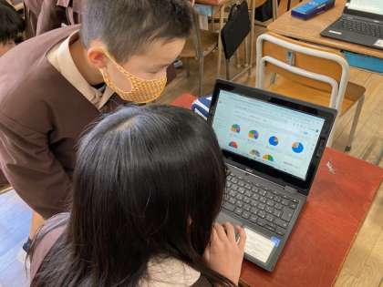 算数「割合のグラフ」では学級のアンケート結果をタブレットでグラフ化しました。