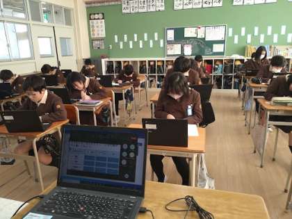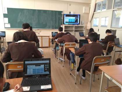 6年生は、理科「発電と電気の利用」の学習で、2組は理科室、1組は教室でオンライン授業をしています。双方向でしっかり発表することができました。