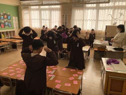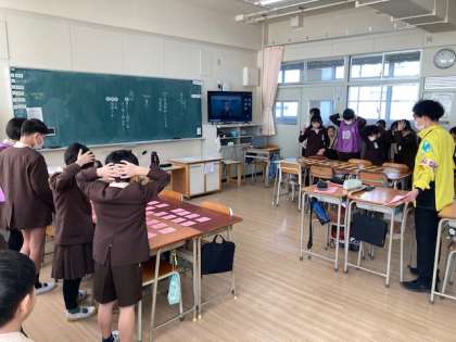 2時間目にたてわり班で「カルタ集会」がありました。落ち着いた声で読み札を読み、しっかり聞き取って集中して取り組みました。