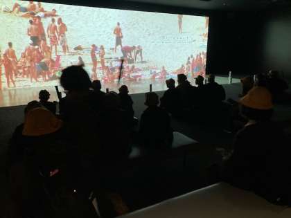 映像室は野里小学校の貸切でした。生き物であるヒトと自然の繋がりを感じさせる映像でした。