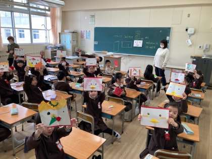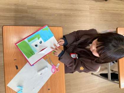 図工「パクパクこんにちは」は、のりを上手に伸ばして素敵な作品に仕上げました。