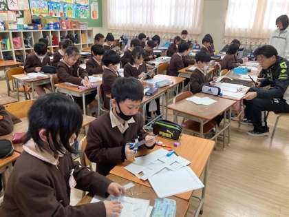 算数「はこの形」は面の形や数に気をつけながら方眼紙を使って箱を作りました。