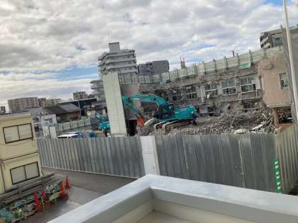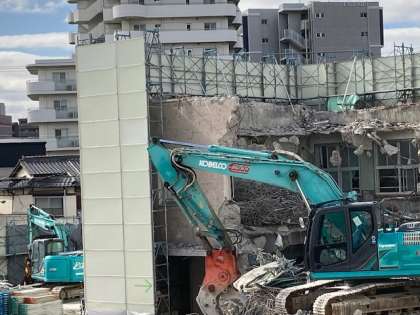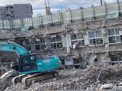 重機2台で解体を進めています。後数日で西校舎の原型は無くなるそうです。