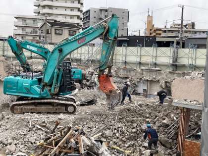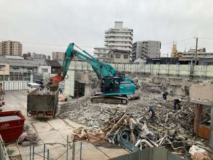 いよいよ1階部分の解体にかかっています。廃棄物が順次運び出されています。