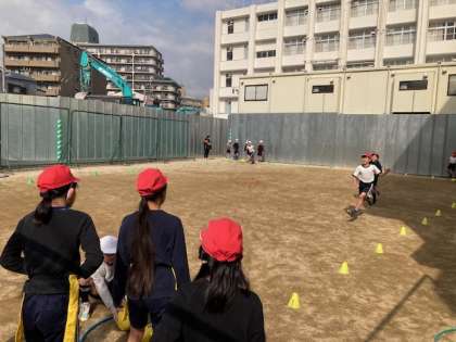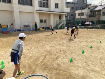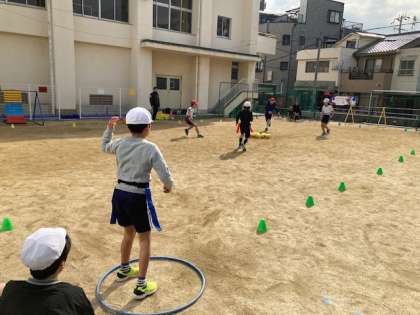日差しが心地よい天気のもと、限られたスペースでたくさん運動をしています。