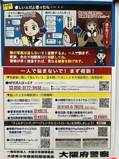 大阪府警察本部生活安全部少年課より周知依頼がありましたので、お知らせします。