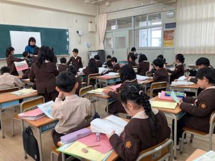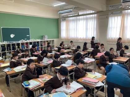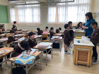 新入生への歓迎メッセージで1年間の様子を伝えます。1年生に「ただしく やさしく」教える事のできる2年生をめざします。