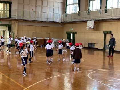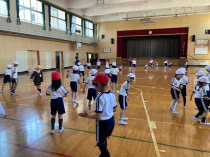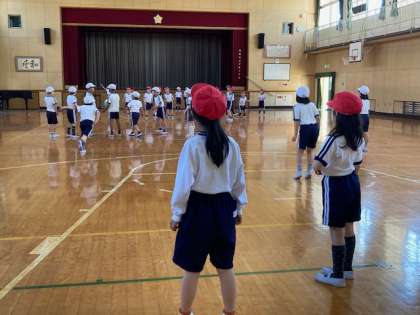 体育館でルールを守って楽しく運動をしました。並び方が変わっても声を掛け合って協力しています。