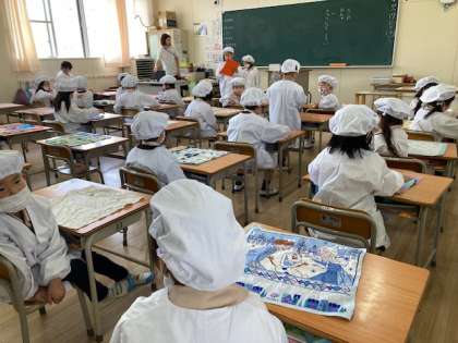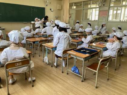 給食の準備ができました。日直の仕事を少しずつ始めています。