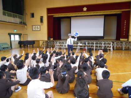 11月2日(月)に西淀川警察署の方に来ていただき、1年生と4年生が交通安全について学習しました。1年生は正しい歩行の仕方を、4年生は正しい自転車の乗り方を教えていただきました。他の学年も警察署の方が用意してくださったリーフレットを使い、交通安全の学習をしました。