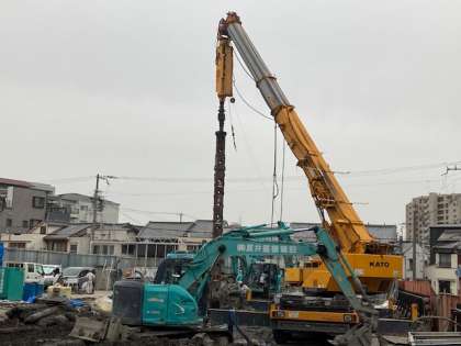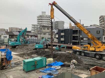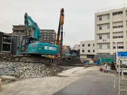 貯水槽の工事準備が始まりました。文字通り「基礎固め」をしています。