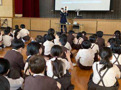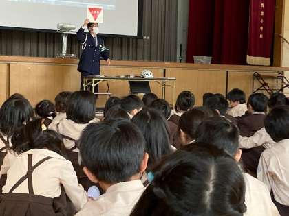 西淀警察から来校いただき、交通安全に関わるお話をしていただきました。