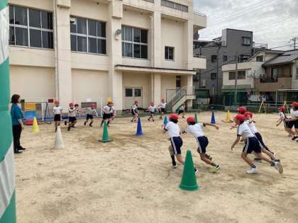 体育は指示に素早く反応して楽しみながら体力づくりを進めています。