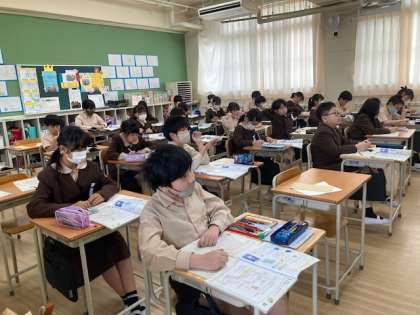 ?理科は実験のまとめをしています。結果から分かったことを適切な言葉でまとめるように友だちの意見を参考にしています。