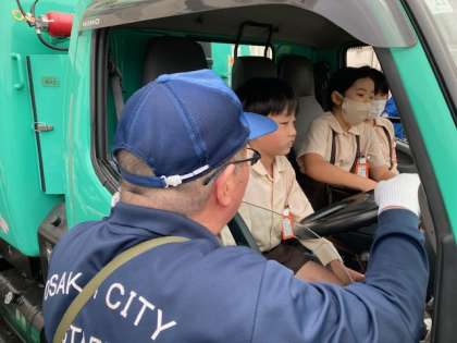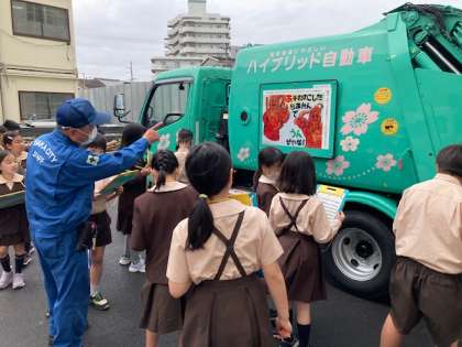 社会「ごみ工場」について環境事業局から訪問授業に来ていただきました。パッカー車の作業やごみ収集の際の分別等、詳しく教えていただきました。