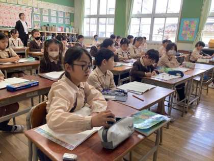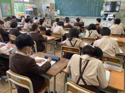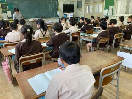 国語「メモを取りながら話を聞こう」を学習しています。3年になると書きながら聞くというようにレベルアップを図っていきます。