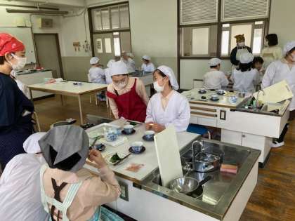 ?家庭科「調理実習」では、安全に気をつけて班で協力して進める事ができました。