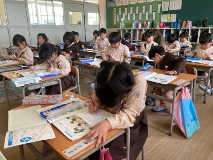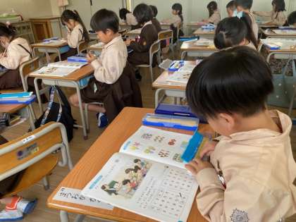 算数「10をつくろう」では、学習した「いくつといくつ」を利用してできます。積み重ねがとても大切です。