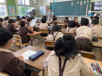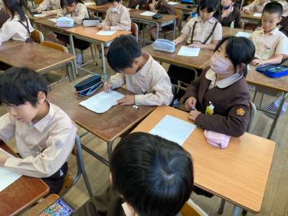 学級活動の話合いでは学級目標を考えました。みんなで力を合わせてより良い学級にしていきます。