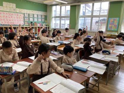 算数「わり算」では、文章題に取り組んでいます。計算に加えて答えの単位にも気をつけて正しくできるように頑張っています。