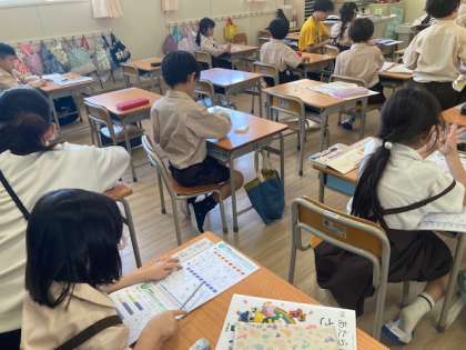 算数「いくつといくつ」ではブロックを使ったりさくらんぼで考えたりしながら数の構成に慣れています。