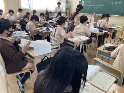 算数「分数をかける計算」では分数同士の計算ができるようになりました。練習問題に取り組んでいくうちに計算に慣れてきました。