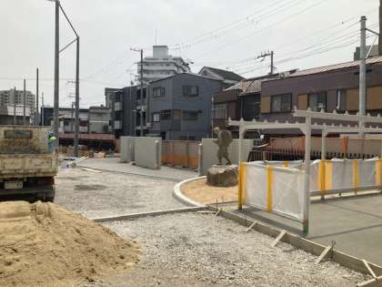 正門付近の様子です。7月からの登下校は正門に戻る予定です。