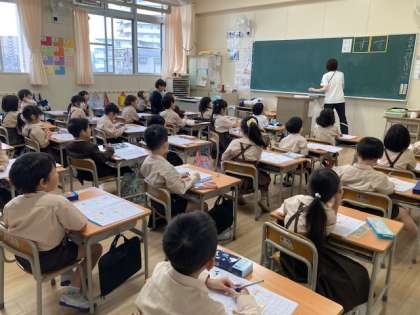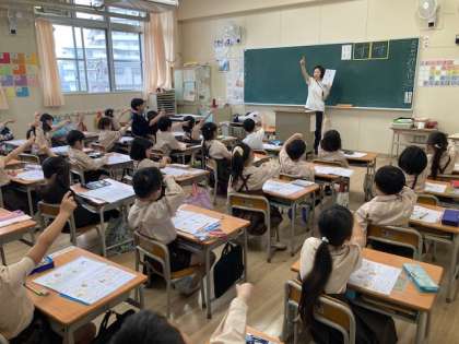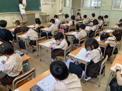 国語で平仮名の学習をしています。「そ」や「す」等、形を取るのが難しい文字にチャレンジしています。