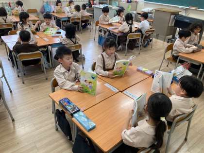 国語「とん とこ とん」では音読発表の前に班で練習しています。ねずみともぐらの役割を決めて音読